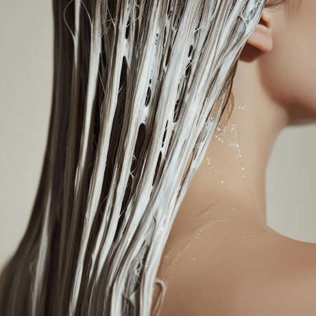 يُدلّك الشعر بلطف لتحسين امتصاص المكونات.