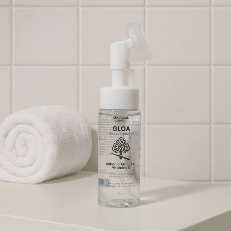 La Mousse Nettoyante Éclat est un soin doux sans parabènes, enrichi en vitamine C, oliban d’Afrique, acide hyaluronique et Centella Asiatica, spécialement conçu pour purifier, éclaircir et hydrater la peau tout en resserrant les pores.